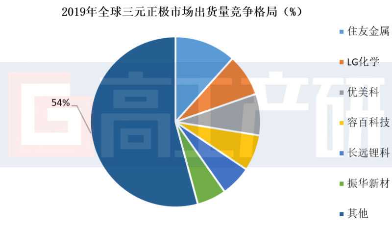 1)住友金屬、優(yōu)美科、LGC在三元正極材料領(lǐng)域分別供應(yīng)松下、SDI、SKI以及LGC,2019年受國外新能源汽車市場帶動,頭部電池企業(yè)配套的三元正極材料生產(chǎn)企業(yè)出貨量得以提升;