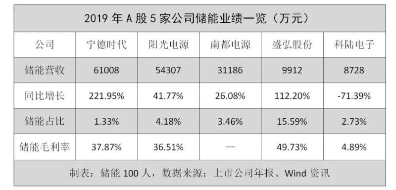 每年的4月30日,也是一年一度所有上市公司披露財報的截止日期。“儲能100人”對55家儲能概念上市公司業(yè)績進(jìn)行全部統(tǒng)計,其中有5家公司對儲能業(yè)績進(jìn)行了單獨(dú)披露,他們分別是:寧德時代、陽光電源、南都電源、盛弘股份和科陸電子。