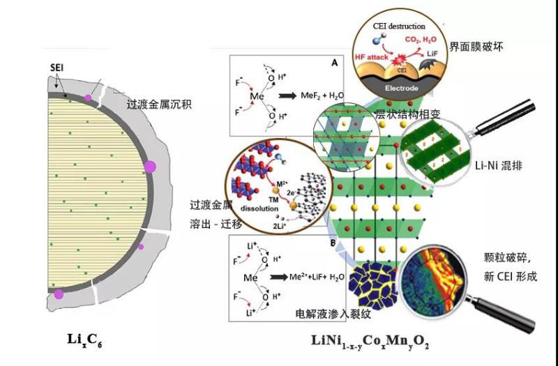 三元鋰離子電池中正極材料的失效模式是一個復(fù)雜的行為,盡管我們基于實驗現(xiàn)象對其從本體和界面兩方面進(jìn)行了歸納和總結(jié),但在實際使用過程中,即使在最溫和的使用條件下,三元正極材料的失效過程也不是單一存在的,隨著材料鎳含量的提高、工作電壓的提升,多尺度(體相結(jié)構(gòu)、二次顆粒、電極)、多形態(tài)(本體固相、固液界面、產(chǎn)氣)的失效模式將更多地耦合在一起。