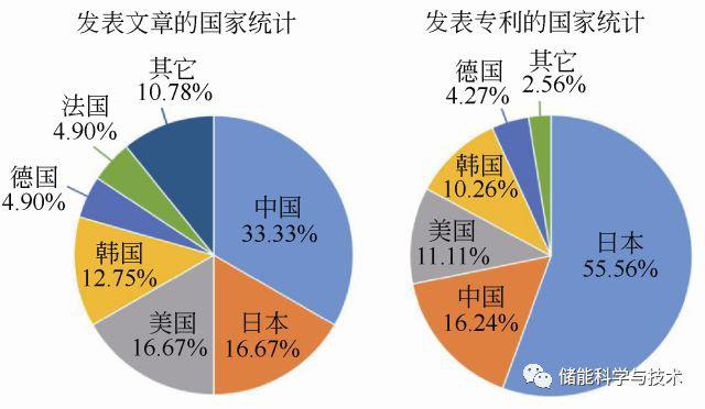 圖2 2017年不同國(guó)家發(fā)表的固體鋰電池文章及專(zhuān)利的數(shù)據(jù)統(tǒng)計(jì)