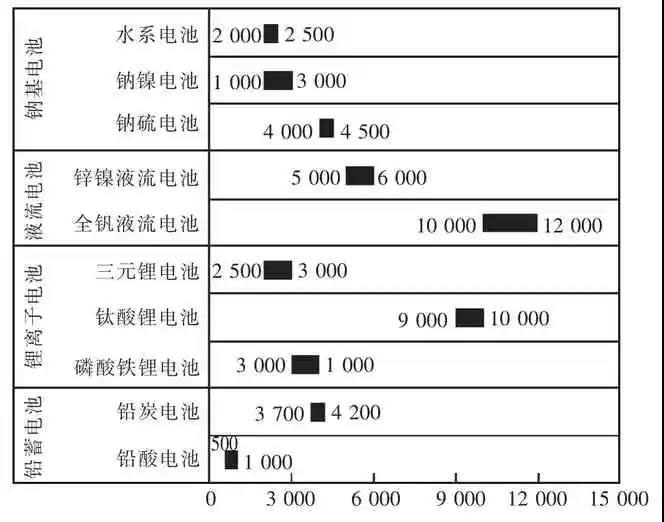 在電池儲(chǔ)能技術(shù)特性方面,受產(chǎn)業(yè)規(guī)模、系統(tǒng)成本、能量及功率特性、服役特性、可回收性等綜合影響,目前鋰離子電池(磷酸鐵鋰和三元鋰電池)優(yōu)勢(shì)突出,鉛炭電池[12]、全釩液流電池及梯次利用鋰電池特定場(chǎng)景下具備競(jìng)爭(zhēng)力[13]。鉛酸電池服役壽命過(guò)短、鈦酸鋰電池一次性投資成本過(guò)高、鈉硫電池安全問(wèn)題突出且技術(shù)進(jìn)步緩慢、超級(jí)電容器能量成本過(guò)高,后幾類(lèi)技術(shù)現(xiàn)階段市場(chǎng)競(jìng)爭(zhēng)力不足。
