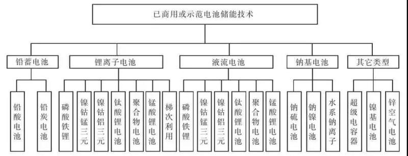 圖1 已商用或示范電池儲(chǔ)能技術(shù)分類(lèi)