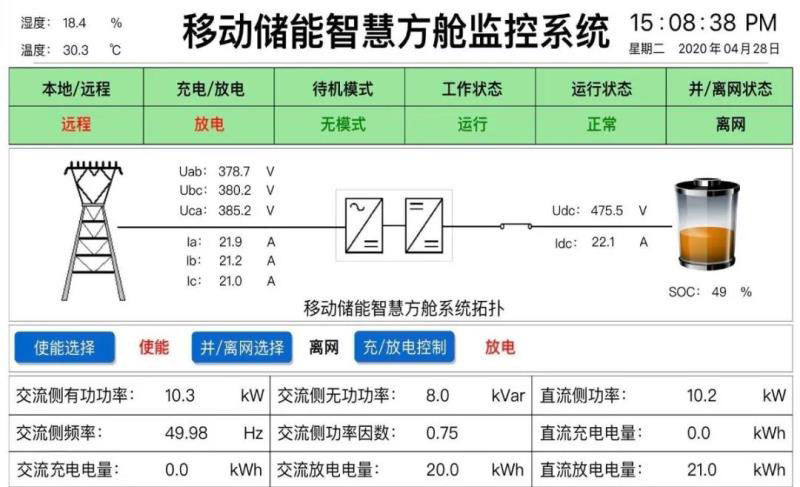 移動儲能智慧方艙由國網(wǎng)江蘇綜合能源服務(wù)有限公司與中國電力科學研究院新能源研究中心合作研制,作為后備電源應(yīng)用在戶外施工。