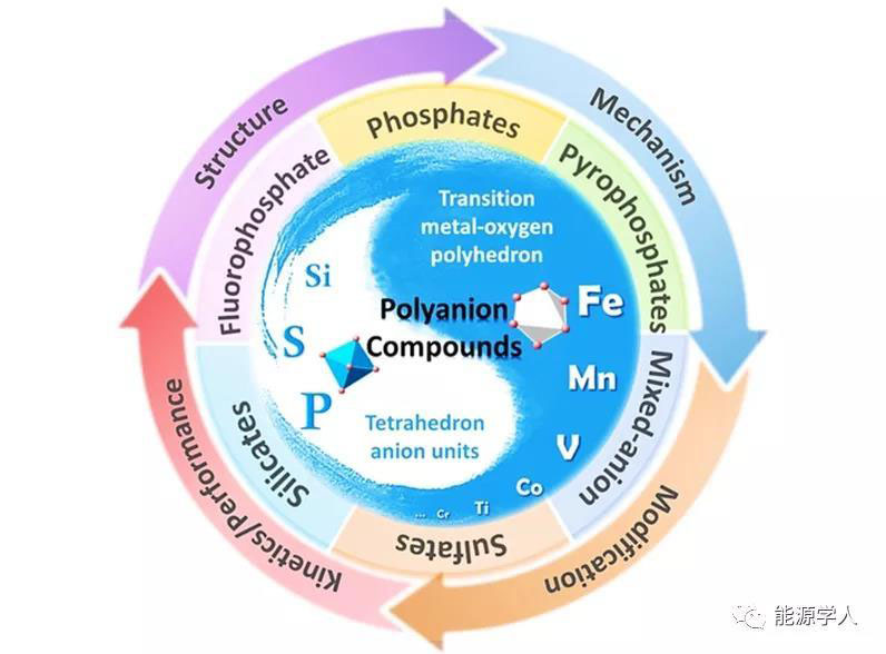 作為繼鋰離子電池之后的一大代表性電池體系,鈉離子電池由于資源豐富、成本低廉等優(yōu)點(diǎn)在智能電網(wǎng)、低速電動(dòng)車(chē)等大規(guī)模能量?jī)?chǔ)存和轉(zhuǎn)化領(lǐng)域極具發(fā)展優(yōu)勢(shì)。正極材料決定著電池的能量密度。聚陰離子型化合物具有穩(wěn)定的三維骨架結(jié)構(gòu),較高的工作電壓,良好的安全性,因此成為鈉離子電池中的一類(lèi)代表性正極材料。然而,聚陰離子型化合物的電子電導(dǎo)率較低,限制了電池的比容量和倍率性能。近日,南開(kāi)大學(xué)焦麗芳教授團(tuán)隊(duì)在Chemical Society Reviews上發(fā)表綜述文章(期刊背封面),該文章系統(tǒng)全面的討論了磷酸鹽、氟化磷酸鹽、焦磷酸鹽、混合磷酸鹽、硫酸鹽、硅酸鹽等類(lèi)型鈉離子電池聚陰離子型正極材料的研究進(jìn)展和面臨的挑戰(zhàn),并對(duì)近幾年的一些新型表征手段所取得的研究進(jìn)展進(jìn)行了著重介紹,同時(shí)探討了此類(lèi)材料未來(lái)的發(fā)展方向,提出了解決鈉離子電池聚陰離子型正極材料關(guān)鍵問(wèn)題的思路。