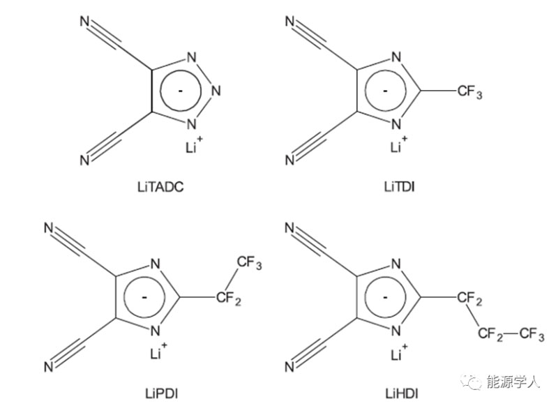 新鹽的工業(yè)化和國(guó)際科學(xué)合作的實(shí)施。在1990年代中期,為了響應(yīng)工業(yè)需求,作者提出了一種基于休克爾陰離子的新型鹽的合成方法,該鹽包含芳香族骨架。在可能的休克爾陰離子中,唑類將是有利的,因?yàn)樗鼈儍H包含碳和氮原子。以不斷探索的方式設(shè)計(jì)獲得的第一個(gè)鹽是用于SPE的LiTADC。隨后,通過使用先前開發(fā)的用于咪唑啉陰離子環(huán)化的合成路線,LiTDI大規(guī)模生產(chǎn)。除此之外,還制備了其他變體:LiPDI和LiHDI。(圖3)。