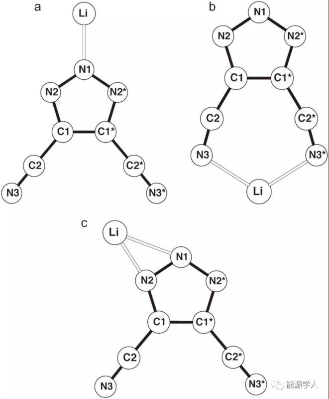 分子建模研究設(shè)計(jì)新型休克爾陰離子。近二十年來,建模是新型休克爾陰離子開發(fā)不可或缺的一部分。它從非常簡(jiǎn)單的從頭算方法開始,再結(jié)合紅外和拉曼光譜,確定主要的離子-離子相互作用,并逐漸發(fā)展為主要通過DFT獨(dú)立地提出新的陰離子設(shè)計(jì),然后又還原為更復(fù)雜的模型和方法,包括對(duì)現(xiàn)有陰離子的真實(shí)電解質(zhì)的隱式和顯式溶劑化。在此之后的分子建模研究中,已經(jīng)在現(xiàn)有基礎(chǔ)上進(jìn)行了拓展:可以建立所有無氟電解質(zhì)分子模型、使用休克爾族陰離子作為電化學(xué)穩(wěn)定性窗口(ESWs)的計(jì)算基準(zhǔn)研究的一部分、通過DFT和MD模擬使用一種休克爾陰離子作為溶劑化離子液體(SIL)或基于等比例的電解質(zhì)模型。應(yīng)用簡(jiǎn)單的計(jì)算模型將鋰離子放置于陰離子的不同位置,主要用于兩種方式:i)直接計(jì)算不同離子對(duì)的相對(duì)穩(wěn)定性,以及ii)計(jì)算陰離子本身和不同陰離子對(duì)的拉曼光譜,如圖1所示。