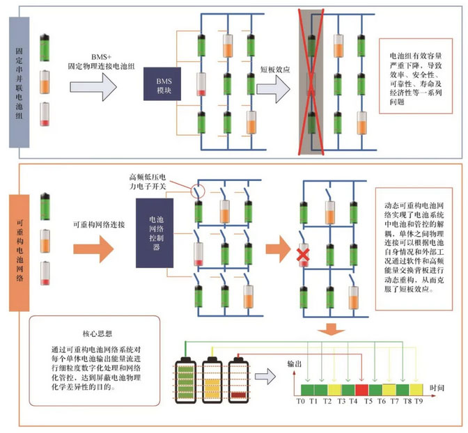 ? 圖1 可重構電池網(wǎng)絡對當前電池管理技術的范式創(chuàng)新原理圖