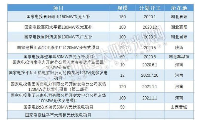 根據(jù)北極星太陽能光伏網(wǎng)查詢,截至目前國家電投光伏備案項目規(guī)模約800MW,項目主要落地湖北、河南、陜西、山西,其中分布式光伏規(guī)模262MW。從備案信息來看,上述光伏項目將在今年下半年至2021年開工建設(shè)。為實現(xiàn)光伏裝機目標,后續(xù)國家電投還有一大批光伏項目正在路上。