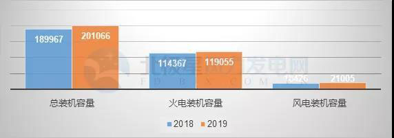 圖1:2018-2019全國(guó)電力裝機(jī)對(duì)比圖(單位:萬(wàn)千瓦)