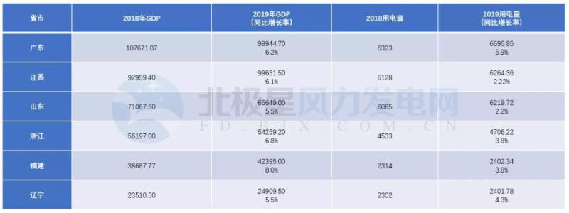 表1:2018-2019海上風(fēng)電發(fā)展大省的GDP和用電量對(duì)比