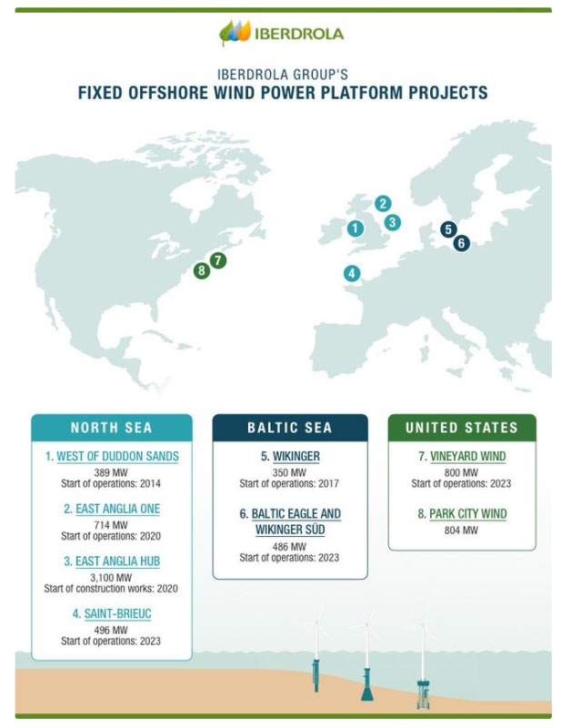Iberdrola的固定基礎(chǔ)海上風(fēng)電項目情況