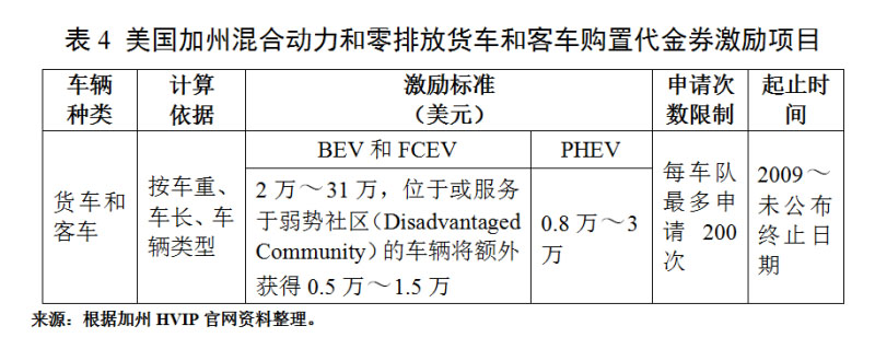 CARB在2009年啟動(dòng)了混合動(dòng)力和零排放貨車和客車購(gòu)置代金券激勵(lì)項(xiàng)目(HVIP, The Hybrid and Zero-Emission Truck and Bus Voucher Incentive Project),為購(gòu)買符合條件的電動(dòng)(包括BEV、FCEV、PHEV、HEV等)貨車和客車的購(gòu)買者提供補(bǔ)貼。2019年10月,CARB對(duì)車型范圍等內(nèi)容進(jìn)行了調(diào)整,HEV和純電續(xù)駛里程低于35英里(約合56公里)的PHEV不再享受補(bǔ)貼。
