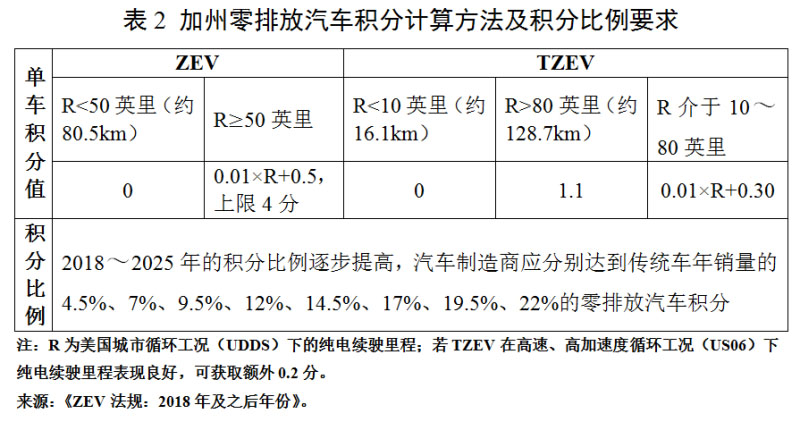 (一)零排放汽車積分。加州零排放汽車法案通過(guò)強(qiáng)制規(guī)定汽車制造商零排放汽車銷售比例和允許積分交易相結(jié)合的方式,迫使汽車制造商推廣零排放汽車。一是以排放清潔程度綜合表現(xiàn)劃分車輛種類和積分值。BEV、燃料電池汽車(FCEV)為零排放汽車(ZEV),積分值較高;尾氣排放、燃料蒸發(fā)排放等綜合排放達(dá)到標(biāo)準(zhǔn)的PHEV為過(guò)渡性零排放汽車(TZEV),積分值較低;部分增程式電動(dòng)汽車享受零排放汽車待遇。二是要求銷量達(dá)到一定規(guī)模的傳統(tǒng)燃油汽車制造商必須具備零排放汽車積分。在加州汽車銷售量達(dá)到10000輛以上的大中型汽車制造商必須具備一定的零排放汽車積分,以汽車制造商傳統(tǒng)汽車年銷量乘以零排放汽車比例要求來(lái)確定汽車制造商應(yīng)達(dá)到的積分目標(biāo),且積分比例要求逐年提高。三是汽車制造商可以通過(guò)銷售零排放汽車或購(gòu)買其他汽車制造商富余積分來(lái)滿足積分目標(biāo)要求,否則必須按照《健康安全法》要求向加州政府繳納每個(gè)積分5000美元的罰款。四是加州允許汽車制造商使用聯(lián)邦GHG積分抵償部分零排放汽車積分。汽車制造商依據(jù)聯(lián)邦溫室氣體(GHG,Green House Gas)法規(guī)獲得的富余GHG積分可以在2018~2021年抵償加州ZEV積分,但加州ZEV富余積分不能抵償聯(lián)邦GHG積分。汽車制造商需在2016年底之前申請(qǐng)享受該政策,并承諾其GHG排放水平將在2018~2021年優(yōu)于其企業(yè)平均GHG排放目標(biāo)值至少2g CO2/英里。但ZEV積分不得全部由GHG富余積分抵償,2018~2021年抵償上限分別為50%、50%、40%、30%。