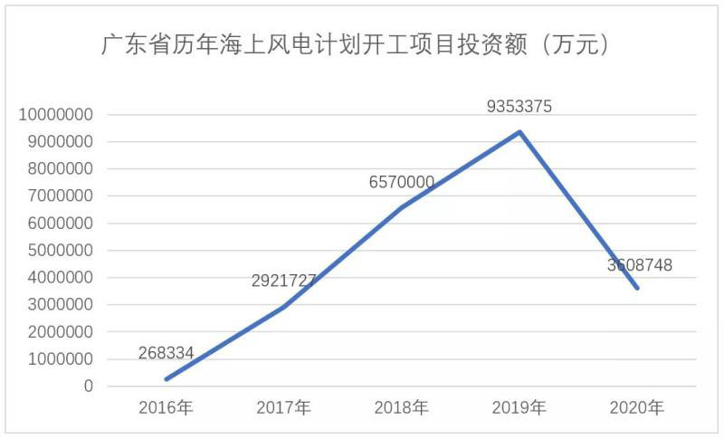 據(jù)《廣東省2020年重點建設項目》顯示,2020年計劃新開工的海上風電項目僅3個,項目總容量180萬千瓦,總投資為360.9億。而就在一年前,廣東省計劃開工的海上風電項目高達10個,總容量為477.8萬千瓦,總投資額高達935.3億元。無論數(shù)量還是容量皆數(shù)倍于今年。