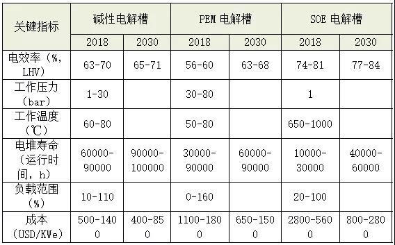 表1 不同水電解槽指標對比