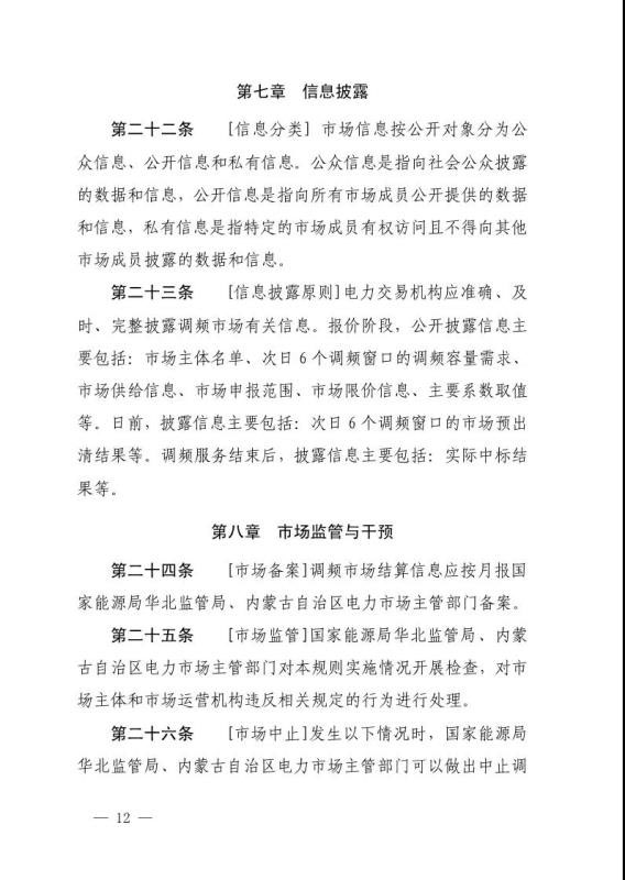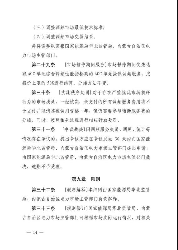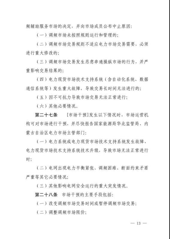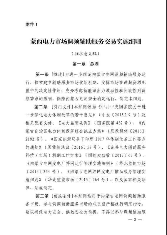 華北能源監(jiān)管局關(guān)于征求蒙西電力市場調(diào)頻和備用輔助服務(wù)交易實施細則意見的函