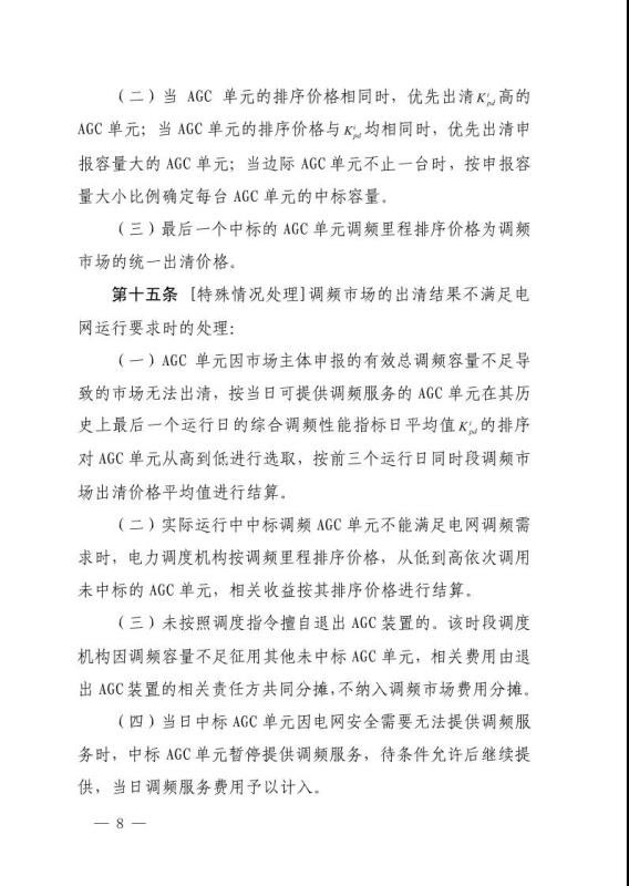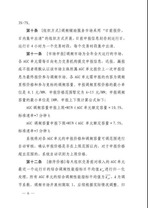 細則指出調(diào)頻服務(wù)費用在包括火電、風(fēng)電、光伏新能源等發(fā)電企業(yè)之間按照其實際上網(wǎng)電量比例進行分?jǐn)偂4送?,文件還規(guī)定市場初期以綜合調(diào)頻性能指標(biāo)前70%的最小Kp值作為AGC單元參與調(diào)頻市場報價的最低技術(shù)標(biāo)準(zhǔn)。