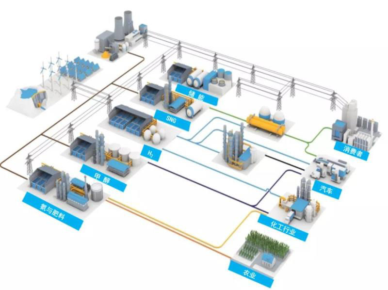 目前風能和太陽能等可再生能源發(fā)電的難點在于發(fā)電的波動性,使發(fā)電高峰和用電高峰產(chǎn)生錯配,造成并網(wǎng)困難。通過電解制氫將可再生能源轉(zhuǎn)化成氫氣,可儲可轉(zhuǎn),其應(yīng)用模式可以抽象為Power to X(如圖1所示), 實現(xiàn)電能到電能、電能到燃氣、電能到燃料、電能到化學品的多種轉(zhuǎn)換,能大大促進能源供應(yīng)端融合,提升能源使用效率。為了促進綠色氫能的大規(guī)模應(yīng)用,亟待開發(fā)低成本的可再生能源電解制氫技術(shù)。