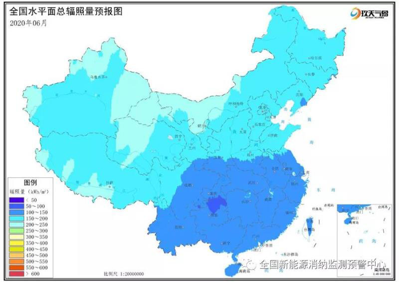 附圖6 全國2020年6月水平面總輻照量預(yù)報(bào)圖