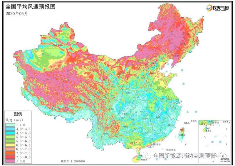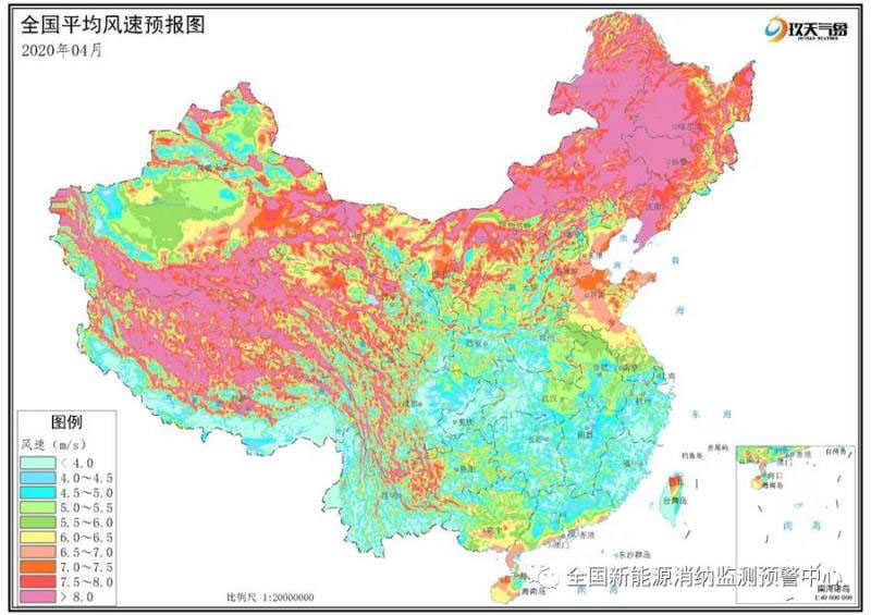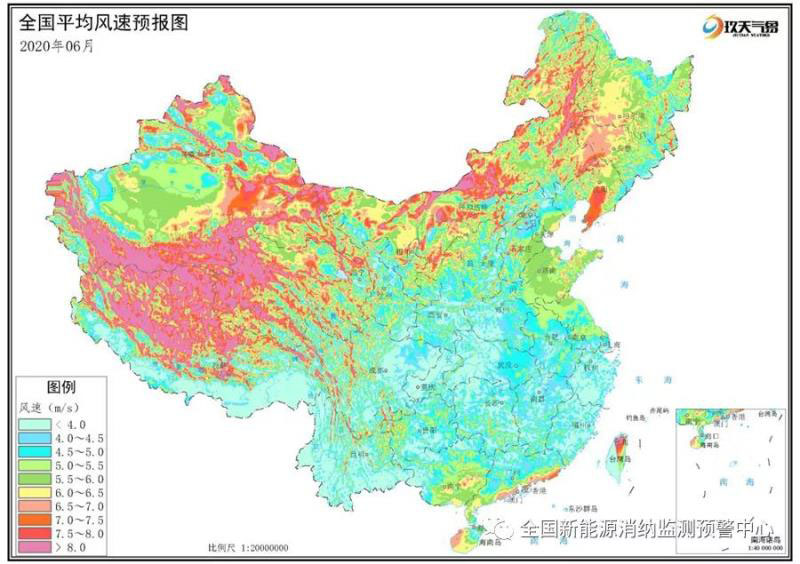 全國大部分地區(qū)風(fēng)速和光照條件接近常年同期水平。根據(jù)中國氣象局預(yù)測,風(fēng)能資源方面,4月、5月華中大部、華東中南部、華南北部、西南東部等地區(qū)平均風(fēng)速為4.0m/s~6.0m/s,華北大部、華東北部、東北大部、西南中西部、西北中北部等地區(qū)風(fēng)速超過6.0m/s,6月大部地區(qū)風(fēng)速減少,尤其是內(nèi)蒙古和東北地區(qū)減少較明顯;太陽能資源方面,4月全國大部地區(qū)平均水平面總輻照量為80kwh/㎡~180kwh/㎡,5月大部地區(qū)平均水平面總輻照量均呈現(xiàn)增加趨勢,6月隨著雨季的到來,華北南部、華東中北部、西南東部、華南南部等地區(qū)的水平面月總輻照量均比5月減少,其他地區(qū)與5月相當(dāng)或偏高。