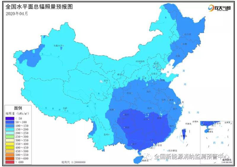 附圖2 全國2020年4月水平面總輻照量預(yù)報(bào)圖