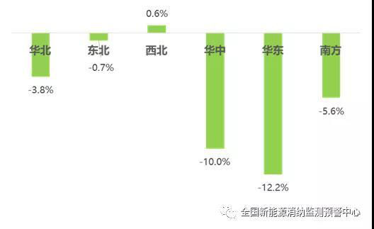 華北地區(qū)受用電量增速下降和供暖季調(diào)峰受限等因素影響,新能源消納情況同比整體下滑,一季度棄風(fēng)率13.6%、棄光率4.1%,同比分別上升7.5和3.0個(gè)百分點(diǎn),山西、蒙西、山東、河北棄電矛盾較為突出;西北地區(qū)新能源消納情況維持較好態(tài)勢,一季度棄風(fēng)率7.1%、棄光率4.9%,同比分別下降1.3和1.9個(gè)百分點(diǎn);東北地區(qū)新能源消納利用持續(xù)保持較好水平,一季度棄風(fēng)率3.5%,同比下降2.8個(gè)百分點(diǎn),基本無棄光;華中、華東和南方地區(qū)消納情況整體較好,一季度除西藏、云南、貴州、湖南出現(xiàn)一定棄風(fēng)棄光,其余地區(qū)無新能源消納問題。