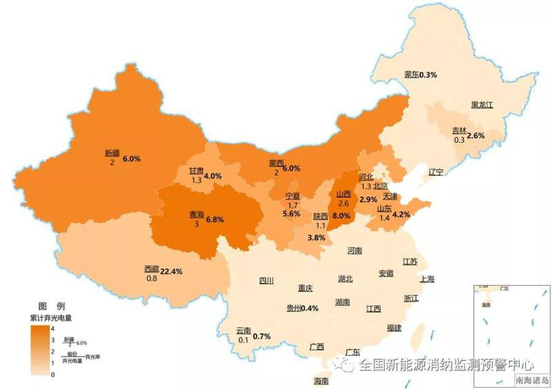 截至3月底各地區(qū)累計(jì)棄光電量(億千瓦時(shí))及棄光率