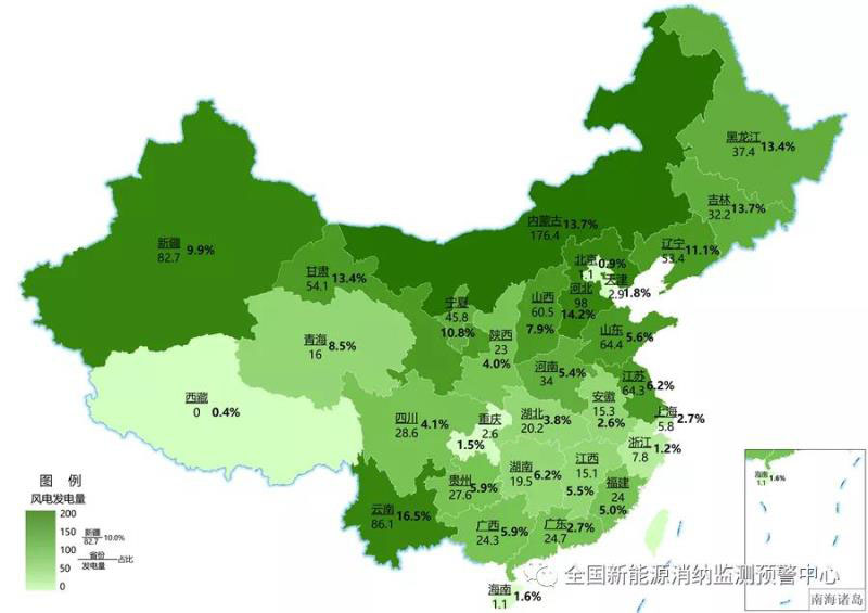 截至3月底各地區(qū)累計(jì)風(fēng)電發(fā)電量(億千瓦時(shí))及占本地區(qū)總發(fā)電量比重