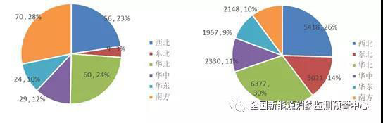 一季度各區(qū)域新增(左)、累計(jì)(右)并網(wǎng)風(fēng)電裝機(jī)(萬千瓦)
