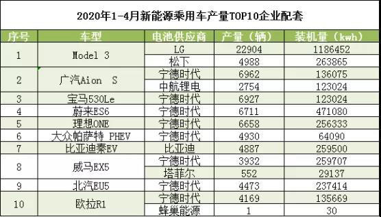 其中Model 3前4月產(chǎn)量為2.79萬輛,以絕對(duì)優(yōu)勢(shì)位居第一,由此也拉動(dòng)了LG和松下的動(dòng)力裝機(jī)量。一季度LG、松下強(qiáng)勢(shì)進(jìn)入國內(nèi)動(dòng)力電池裝機(jī)量TOP5,其中LG化學(xué)4月裝機(jī)量替代比亞迪升至第2。