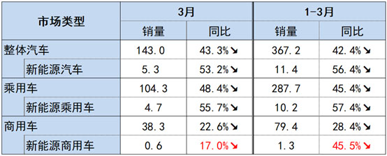 據(jù)中國汽車工業(yè)協(xié)會統(tǒng)計(表1),今年1-3月,我國新能源汽車銷量11.4萬輛,同比下降56.4%,其中新能源乘用車下滑57.4%,新能源商用車下滑45.5%。但就3月而言,新能源汽車銷量5.3萬輛,其中乘用車銷售4.7萬輛,商用車銷量0.6萬輛,同比下降17%。與整體汽車市場及其他細(xì)分市場相比較,新能源商用車3月對比整體Q1降幅急劇收窄,成為整個汽車市場上反彈力度最大者。這表明,新能源商用車市場出現(xiàn)了較大的復(fù)蘇跡象。