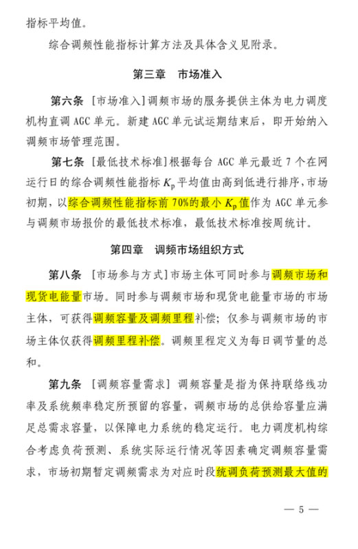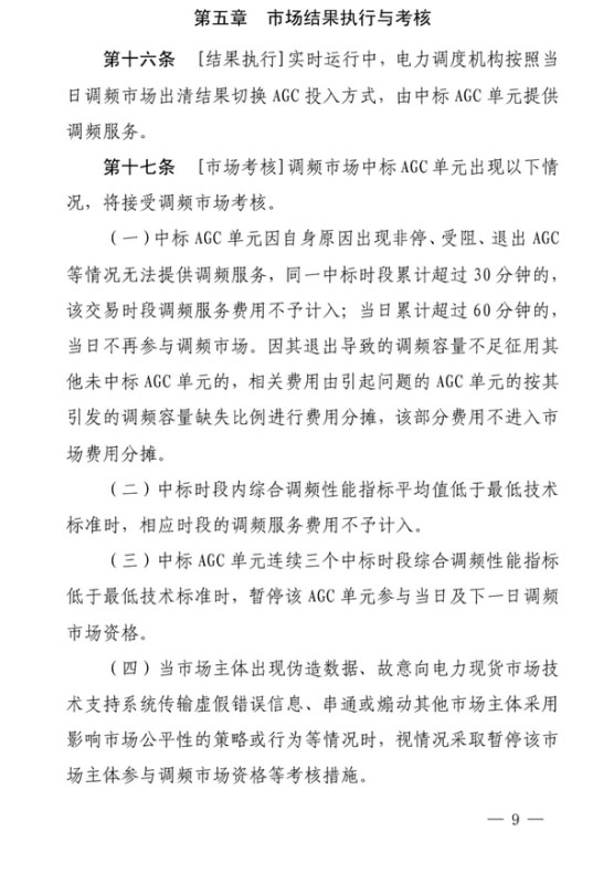 其中,《蒙西電力市場調(diào)頻輔助服務(wù)交易實施細(xì)則》征求意見稿共九章三十五條,這份征求意見稿與廣東市場現(xiàn)行規(guī)則有很多相似之處,分別對市場成員、交易要求、組織實施、考核、結(jié)算、信息披露及市場監(jiān)管等事項進(jìn)行了明確和界定。