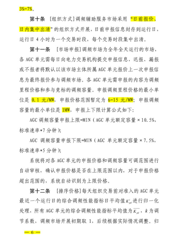 申報調(diào)頻里程價格的最小單位是0.1元/MW,申報價格范圍暫定為6-15元/MW,申報調(diào)頻容量的最小單位是1MW。
