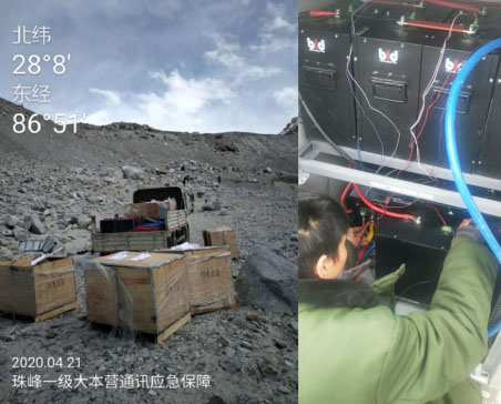 中國儲(chǔ)能網(wǎng)訊:4月,中國的大部分地區(qū)早已是春光明媚,對(duì)于西藏高海拔地區(qū),寒冬還仍在繼續(xù)。4月7日,中國鐵塔西藏日喀則分公司接到了一項(xiàng)光榮而艱巨的任務(wù),為中國電信、中國聯(lián)通屬地公司在珠峰沿線、定日縣一號(hào)營地、珠峰大本營觀景臺(tái)建設(shè)3座5G基站,經(jīng)過6晝夜奮戰(zhàn),在4月14日成功完成3個(gè)站點(diǎn)建設(shè)任務(wù),并于當(dāng)晚開通3座5G基站運(yùn)行。此次建設(shè)的3座5G通信基站全部采用了深圳博磊達(dá)新能源科技有限公司制造的鈦酸鋰電池作為基站備用電源。