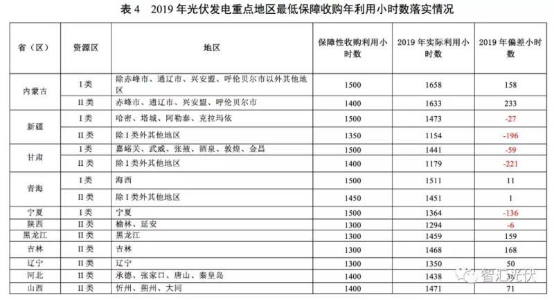 2019年,在規(guī)定光伏發(fā)電最低保障收購(gòu)年利用小時(shí)數(shù)的地區(qū)中,新疆、甘肅、寧夏和陜西4省(區(qū))未達(dá)到光伏發(fā)電最低保障收購(gòu)年利用小時(shí)數(shù)要求。