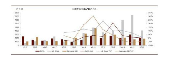 疫情驅動企業(yè)強化控本節(jié)流,但韓國企業(yè)不改動力電池擴張規(guī)劃。疫情帶來的經營不確定下,LG Chem表示將通過1)強化內部控本,2)擴大融資規(guī)模強化現金流管理,3)審慎支出,以應對不確定性。我們也看到CATL在現金充沛下同樣于境外發(fā)債并擬增發(fā)200億元。但LG Chem與三星SDI在動力電池擴產上則維持規(guī)劃不變,LG Chem預期2020/2021年底共動力電池產能達100/120GWh。