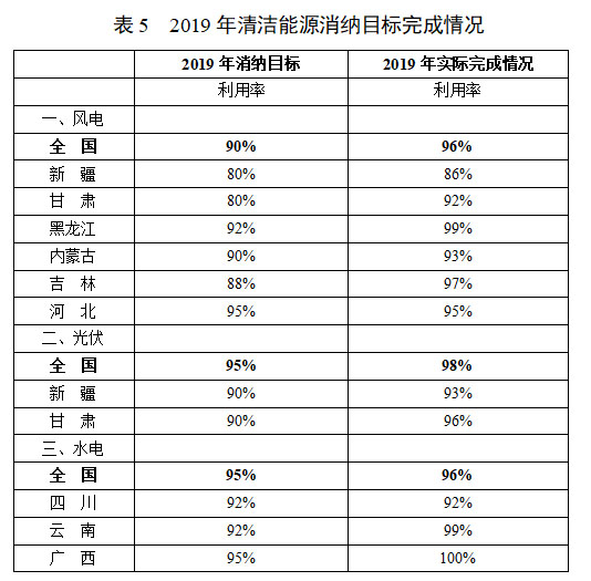 根據(jù)2018年國家發(fā)展改革委、國家能源局印發(fā)的《清潔能源消納行動計劃(2018-2020年)》(發(fā)改能源規(guī)〔2018〕1575號),所確定的分年度風(fēng)電、光伏和水電消納目標(biāo),2019年,全國平均風(fēng)電利用率96%,超過2019年利用率目標(biāo)6個百分點,重點省區(qū)全部達(dá)到了2019年消納目標(biāo);全國平均光伏發(fā)電利用率為98%,超過2019年利用率目標(biāo)3個百分點,重點省區(qū)全部達(dá)到了2019年消納目標(biāo);全國主要流域水能利用率96%,超過2019年利用率目標(biāo)1個百分點,重點省區(qū)全部達(dá)到了2019年消納目標(biāo)。