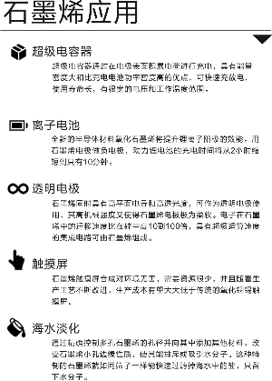 深圳清華大學(xué)研究院前院長、江南石墨烯研究院名譽(yù)理事長馮冠平認(rèn)為:“石墨烯的應(yīng)用必然是一個(gè)由低端向高端延伸的過程。利用石墨烯的導(dǎo)電導(dǎo)熱性的低端應(yīng)用這兩三年內(nèi)將會(huì)崛起,而應(yīng)用于光電轉(zhuǎn)換的電池以及代替硅材料的芯片領(lǐng)域,仍需要較長的時(shí)間?!?