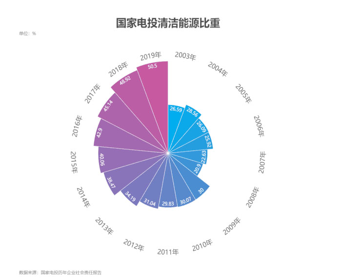 錢智民領(lǐng)導(dǎo)的國(guó)家電投也在經(jīng)歷一場(chǎng)新的“裂變”。去年,該公司清潔能源裝機(jī)占比超過(guò)50%,提前完成其在十余年前確立的“裂變”目標(biāo)。這一成績(jī)?cè)谖宕蟀l(fā)電集團(tuán)中一騎絕塵。