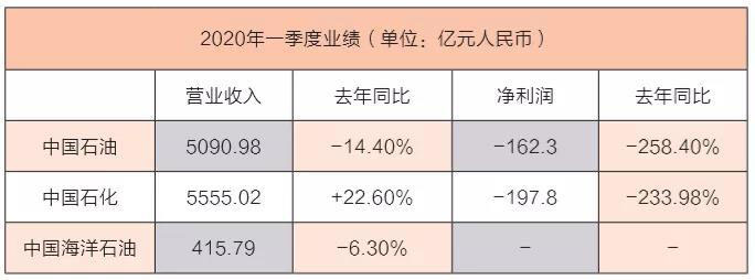 “三桶油”一季報(bào)表現(xiàn)普遍不佳。中國(guó)石油一季度營(yíng)業(yè)收入同比減少14.4%至5090.98億人民幣,歸屬股東凈虧損162.34億元,去年同期為盈利102.45億元;中海油一季度油氣銷售收入同比下降5.5%至399.5億人民幣,主要由于實(shí)現(xiàn)油價(jià)下降及油氣銷量上升的綜合影響;中國(guó)石化一季度實(shí)現(xiàn)營(yíng)業(yè)收入同比降22.6%至5555.02億人民幣,歸屬于母公司股東凈虧損約197.82億元,而去年同期歸屬于母公司股東凈利潤(rùn)為147.63億元。