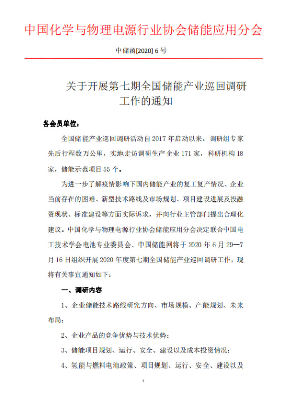 關于開展第七期全國儲能產(chǎn)業(yè)巡回調(diào)研工作的通知