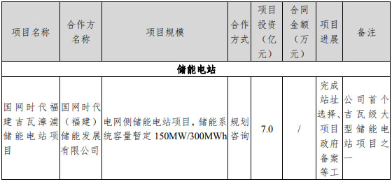近日,永福股份在互動易回復(fù)投資者問題時表示,目前公司儲能應(yīng)用項目累計開發(fā)容量超過100MWh,涉及大型儲能電站、風光儲微電網(wǎng)、“三站合一”變電站和園區(qū)綜合能源示范工程等實際案例,并且目前正在開展大型儲能電站的前期工作。而5月18日永福股份最新公告顯示,目前正在開展的大型儲能電站的前期工作主要有兩個項目,都來自國網(wǎng)時代福建吉瓦級儲能項目。