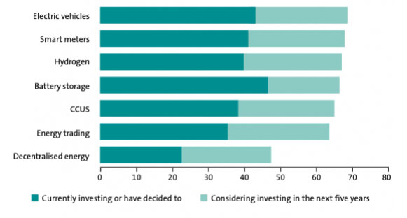 智能電表和氫儲能在當(dāng)前和計劃投資模式中也表現(xiàn)突出,分別有41%和40%的受訪者選擇這兩種非發(fā)電能源技術(shù)。