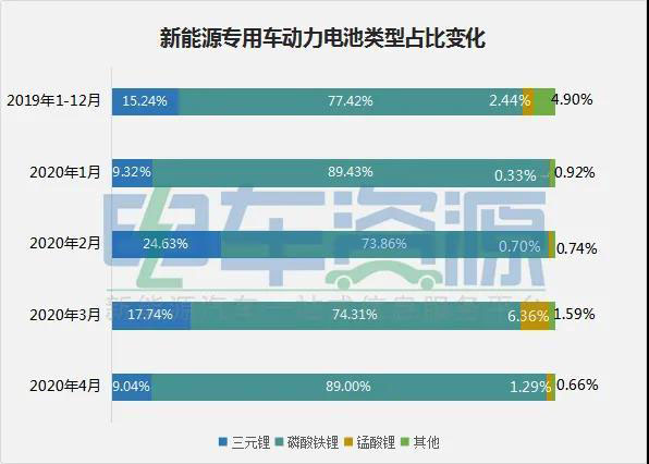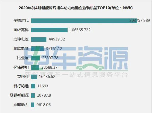 電車資源梳理了2020年1-4月新能源專用車動(dòng)力電池裝機(jī)量的情況,簡要分析如下: