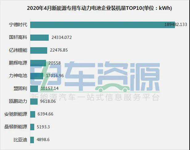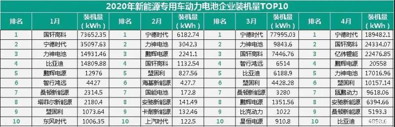 此外,沖進(jìn)4月專用車裝機(jī)量榜單前十的還有盟固利、甌鵬動(dòng)力、安馳新能源、桑頓新能源、比亞迪。