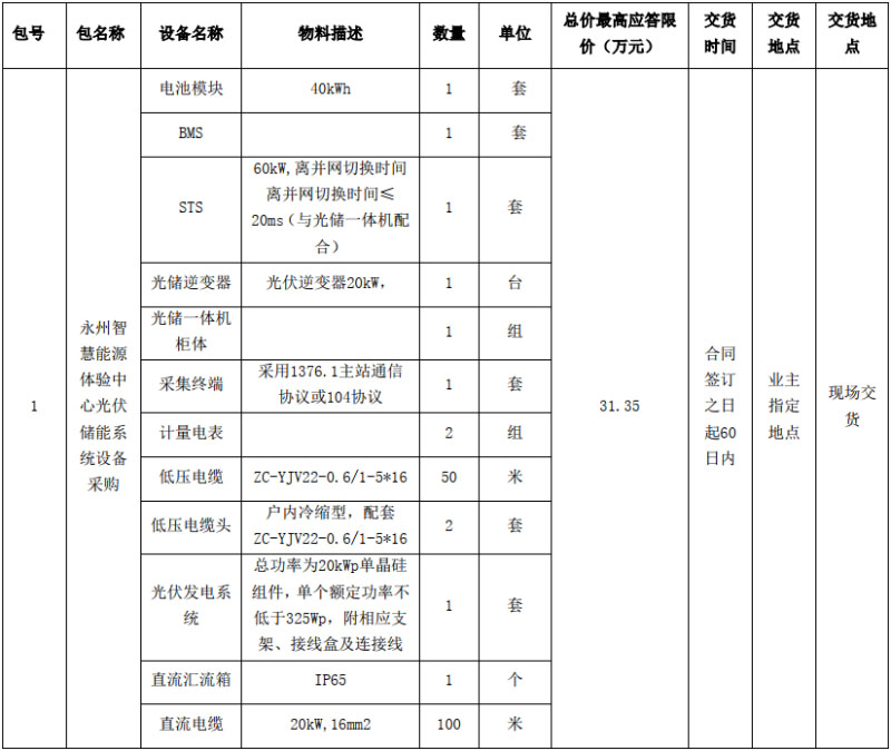 2.1 項(xiàng)目名稱:國(guó)網(wǎng)湖南綜合能源服務(wù)有限公司永州智慧能源體驗(yàn)中心光伏儲(chǔ)能系統(tǒng)設(shè)備采購(gòu)--公開(kāi)競(jìng)爭(zhēng)性談判