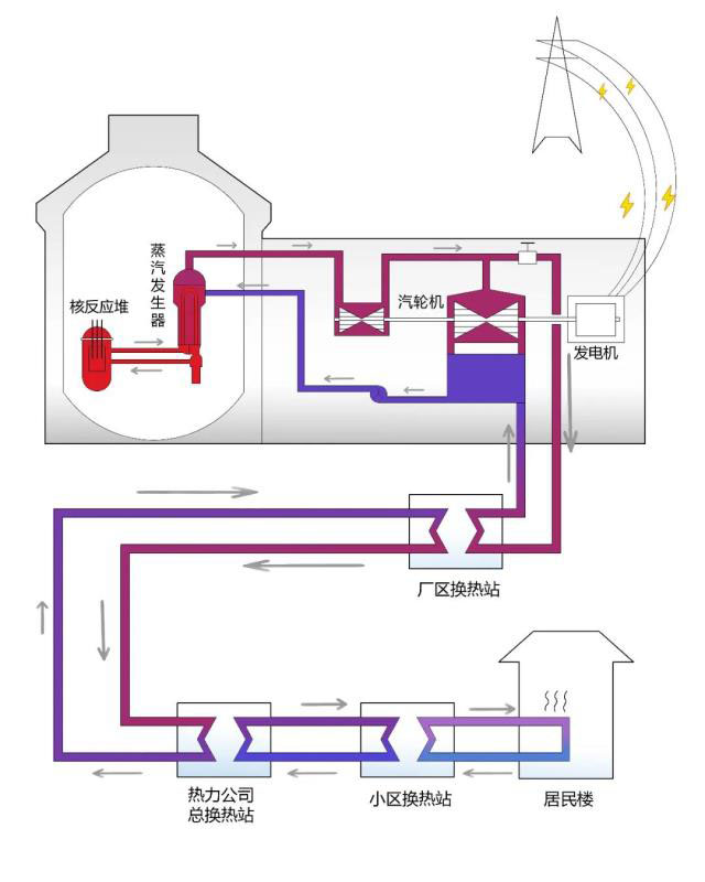 對核電廠來說,安全問題永遠放在第一位,核能供熱項目更是如此。吳放解釋說,在核能供熱的整個過程中,其實是發(fā)生了蒸汽加熱水和水加熱水兩個大步驟,核電站與供熱用戶之間設置了多道回路進行隔離,每個回路之間只有熱量的傳遞,沒有水的交換,沒有任何放射性,用戶暖氣管道中的熱水也只在小區(qū)內封閉循環(huán),與核電廠層層隔離,十分安全。對核電廠自身而言,“讓適合發(fā)電的能量用來發(fā)電,適合供熱的能量用來供熱,取得一個更好的平衡,既提高了機組循環(huán)熱效率,又減少了排到大海和環(huán)境的熱量,實現(xiàn)了環(huán)保和經(jīng)濟效益的雙贏”。核能供熱作為持續(xù)穩(wěn)定的大體量清潔熱源,供熱穩(wěn)定、可靠性強以及零碳排放,也沒有二氧化硫、氮氧化物、煙塵這些污染物排放,供熱價格上可與燃煤電廠持平,是解決目前北方地區(qū)清潔取暖問題比較有效的手段。