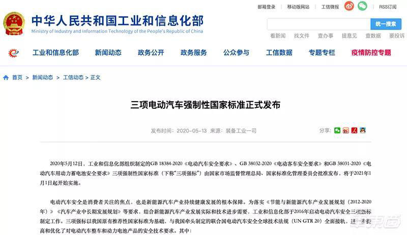入夏以來已經(jīng)發(fā)生了多起電動車自燃的事故,為此,5月12日,工信部連發(fā)三道加急文書,頒布了一系列電動汽車強制標準,其中就包括一條“要求電池單體發(fā)生熱失控后,電池系統(tǒng)在5分鐘內(nèi)不起火不爆炸,為乘員預留安全逃生時間”。