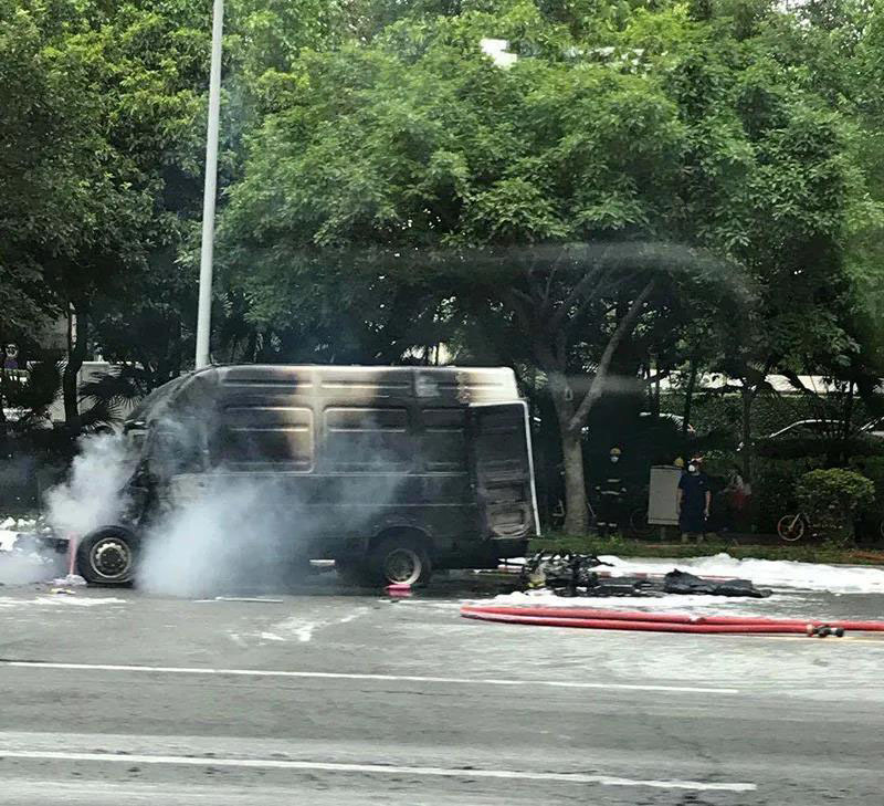 車東西5月26日消息,今日6時45分,微博上有用戶放出一條視頻,視頻上顯示在深圳福田區(qū)皇崗路與蓮科路路口,一輛電動貨車追尾了一輛校車,隨后電動車底部開始著火,從視頻中可以看到,電動車內(nèi)還有一名司機在車里揮手,但并未下車。