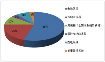 儲能行業(yè)發(fā)展過程中,更多人把希望寄托在降低儲能系統(tǒng)成本之上,認為成本是影響儲能行業(yè)發(fā)展的最關(guān)鍵因素,而筆者雖然認同適當(dāng)降低儲能系統(tǒng)成本有利于推動行業(yè)發(fā)展,但降低成本絕非最核心因素。縱觀這些年儲能行業(yè)發(fā)展的歷程,以鋰離子電池儲能系統(tǒng)為例,系統(tǒng)的硬件物理成本快速下降,即使近至今年上半年,在風(fēng)電場配置儲能的應(yīng)用場景,短短幾個月時間里,中標(biāo)價格即由2.15元/Wh(PC價格)降至1.699元/Wh(EPC價格),降價之快降幅之大令人咋舌。雖然不排除受疫情這個特殊因素影響,個別企業(yè)舍利潤換取現(xiàn)金流,但整個儲能行業(yè)的降價趨勢由此可見一斑。讓我們以1C倍率集裝箱儲能系統(tǒng)為例來分析一下系統(tǒng)物理硬件成本比例,其成本分布大概如下餅狀圖。